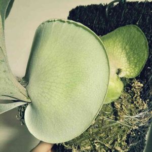 P.OMOは貯水葉、胞子葉共に順調✨ オペ後の七三はあっという間に見えなくなりました✨ビカクの成長は塊根より俄然早いので楽しい!立派に成長してくれ〜! 後ろのリドレイは草会議でアドバイス頂いたラップ巻き実施中😁ありがとうございます!まだ4日目ですが成長点の緑色が大きくなって気がします。胞子葉なのか、貯水葉なのか、はたまた気のせい…??笑よく観察して育成していきます!!😁