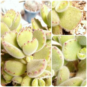 もりもり熊童子🐻🍯 爪の数が多い葉があるのに今日気付きました❢ 途中で増えたのかな? 個体差だと思ってたけど違うんですね〜。 同じ株なのに右上Picは爪が少ない(。 >艸<) 右下Picは爪を齧られた所。 ちょっと大きいミツバチみたいな蜂が齧っているのを目撃しました🐝 何ヶ所かやられてる、もう来ないで欲しいな😅 晴れの日の午後に撮ると緑が黄色くなっちゃいます。