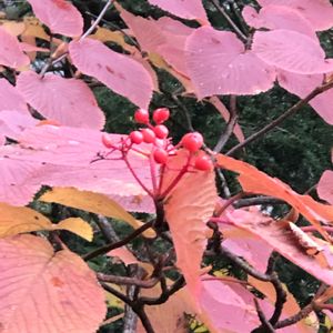 ムシカリ(オオカメノキ) こちらは赤に紅葉しています 黄色に紅葉しているムシカリがおとなりにありました 色の違いはなぜおこる? 女峰山へ向かう道 2400mら辺