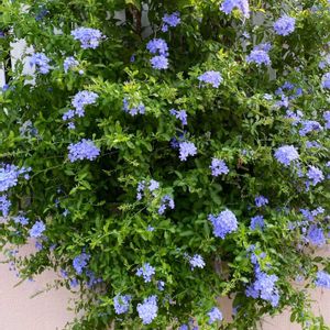 どんなに暑くても元気モリモリ💙 塀の外に飛び出したワイルドなルリマツリです🤗 そろそろまたカットしなければ✂️