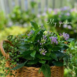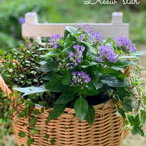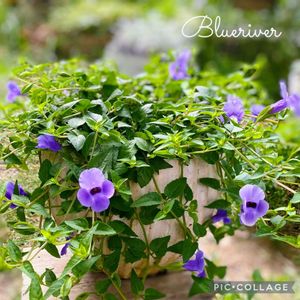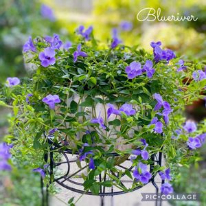 庭のお花たち♡ ①ブルーリバーとアイスリバーの寄せ植え💜🩵 ブルーリバーは挿し芽っ子💜 アイスリバーは今年お迎え🩵 カットしようか迷うけど、もうしばらく自然に任せます🤗 ⓶挿し芽っ子のピンクリバーをおひとり様のハンギングに🩷 ⓷今朝投稿した花あかりの全体の様子🤍💜🤍🍃