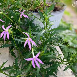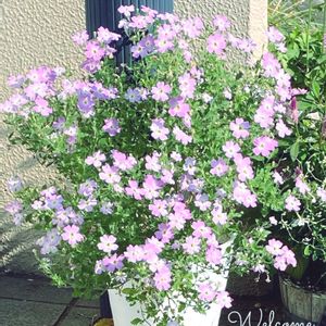 こんばんは^ ^ ジャメスブリテニア サファリモーブスカイ💜🩷 可愛い小花がモリモリ元気に咲いています🌸🌸🌸🍃 この鉢じゃちょっと窮屈かなぁ😅 とにかく暑さに強くて嬉しいお花です🤗💕
