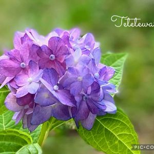 今朝の ♡紫陽花てててまり♡ 色濃くなリました。 ピンクとパープルが混じって綺麗です🩷💜🍃 咲きはじめからずっと可愛いてててまり🥰