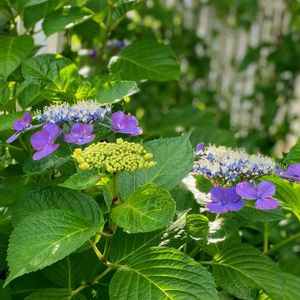 おはようございます^ ^ 挿し木のガクアジサイ💜🍃 今年で5年目かな? 我が家の紫陽花の中で1番元気で生育旺盛です♡ 隣のアガパンサスに陽が当たらなくなるのでたくさんカットしたらお花は7つしか咲きませんでした😅 ごめんなさいです🙏