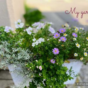 おはようございます^ ^ 少しずつリメイクしながら長持ちしてくれている寄せ植え💕 しばらくお休みしていたバーベナ花あかりがたくさん咲いてモリモリしてきました♡^ ^♡♪