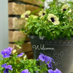 おはようございます^ ^ 玄関前のお花たち♡ パンジーとペチュニアのコラボももう少しで終わりかな。 よく咲くスミレが頑張ってくれてます💜💙🍃 ペチュニアはこれからモリモリになってね🤗💓