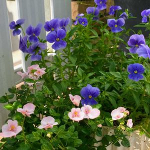 こんにちは^ ^ 玄関前のディアスシアがたくさん咲いてきました🌸🍃 パンジーよく咲くスミレとのコラボが綺麗です💙💜🩷