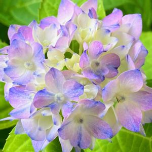おはようございます^ ^ 5年前にお友だちからいただいて挿し木したガクアジサイ🩷💜🍃 1枚目が今日、2枚目が昨日のpicです。 ガクアジサイも可愛いですね💕