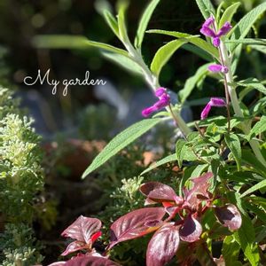 9月に作った寄せ植えのメドーセージとアルテルナンテラ🍃💜🩷 暴れまくったのでカットしたメドーセージが小さな花を咲かせました♡ とっても可愛い😍 アルテルナンテラはピンクに紅葉して来ました🩷🍁