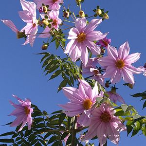 こんにちは😊 ウォーキングただいま〜です🚶♀️ ① 大好きな花友さんとオソロ嬉しいです🩷💮 皇帝ダリア😍 ② 周りの空気迄暖かく包んでくれる 優しい色合いのバラさん🌹 (頑張って頑張って)💪😀 ③ どこまでも続くドウダンツツジ🍂 ④ お山から降りてきた紅葉ライン🍁😀