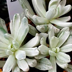【パキベリア属 シャイデッケリ錦】 Pachyveria 'Scheideckeri' f. variegata 和名 花立田 ブラクテオサム×E.セクンダの交配種 ネームタグは確か【立田】🏷 細葉で白斑が入っていたので、 【花立田】とさせていただきました ずっと疑問だったのですが 花立田に限らず斑入りは、 形が整ってない気がしていました ネットで調べてみたら 白い斑の部分は生長が遅い為に、 葉の形が歪になるとの事です ソッカァ、ナットク メモメモ _φ(・_・