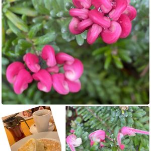 昨日、散歩中に出会った初めてのお花🤩 ビル前の植え込みで、ユニークな花姿のピンクのお花が咲いていました🥰💞 調べてみると💓グレビレアラニゲラ💓と言うちょっと言いにくい覚えにくい名前のお花でした💡