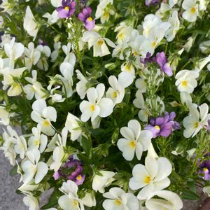 ツリージャーマンダーの花がいい感じです。寄せ植えしていた紫色のビオラがちょうど濃淡で入ってまとまってる。🥰 ツリージャーマンダーの枝は暴れてますが、花が終わったら✂️枝を整えます。