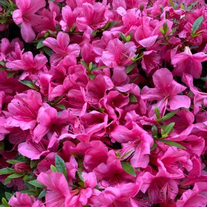 びっちり咲いてます。間から葉っぱがチラチラと存在感を出してます。 うちにもありますが、こんなにびっちりは咲いてなくて、管理がしっかりしてるんだと思います。生垣になってます。 さつきだと思います。