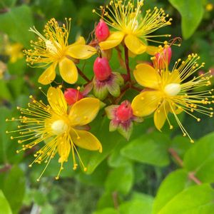花🌼と実がちょうどきれいな時期でした。 梅雨に入りどんよりした天気でしたが、ここはぽっと明るい感じ😄 朝の散歩道🚶♀️、途中から雨にあたって☔️たいへん💦💦