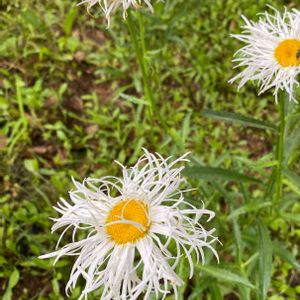 昨日のユリ園に咲いてました。 変わった花びらだなぁとパチリしました。 調べたら、シャスターデージー オールドコートってありました。 あってるのか🤔⁇ 古種で丈夫らしい😄です。