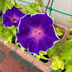 やっと咲きました😆 タネを巻くのが遅かったと反省💦💦 それにしてもなかなか伸びてくれない🥲 まだ鉢のあたりです。 これから⁇伸びるのかわかりませんが、つぼみも見えてきてるのでこれからが楽しみです🎶🎶 台風🌬💨から温帯低気圧にかわったということですが、風💨と雨☔️が凄いです。 植木鉢🪴は軒下にいます😄