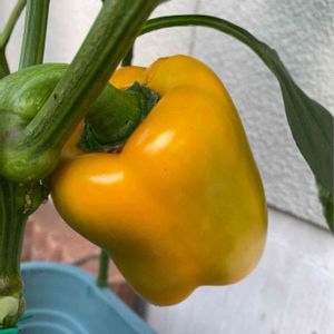 もう、そろそろかなぁ🙄 パプリカ🫑は収穫まで時間がかかるね〜😆 スーパーでもいい値段がついてる訳だ🤭 まだまだ実がついてますが、どこまでみのるかしら😅 お天気次第⁇😄