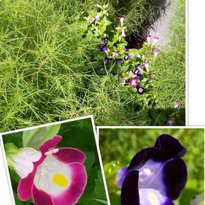 💚トレニア💚 🌿コキア🌿の 間に植えていたトレニアさん 周りの コキアに 圧迫されています🥺🙄🌝 🧐よく 見ると👀 やっぱり 可愛かった👏💚👏💚👏
