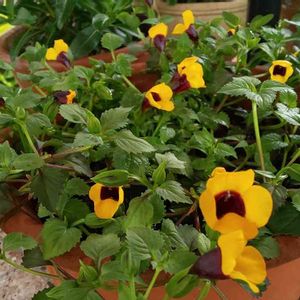 初めて見る花色に惹かれてお迎えしたトレニアスージーウォン。 お迎えした時に葉っぱの調子が悪かったので切り戻してやっとここまで回復しました🌿 黄色と黒(焦げ茶かな?)のコントラストが素敵✨