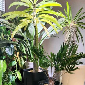 本日植え替え⇨室内移動組 ダイソー出身ボトルツリーからの挿し木株 一回り大きな鉢に植え替えようと取り出したら植ってたところが良い感じにボトルってたのでその部分を出して元の鉢に植え替え ついでにヒョロヒョロの茎も曲げてみた✌️ 元斑入りのセローム 5⇨6号鉢に植え替え 色が微妙なのは斑なのか栄養不足なのか微妙なところ… 根っこはかなり元気だし 次々と葉っぱ出すし 斑だと信じたい🥺 春に剪定した茎を挿し木したクロトン お気に入りの鉢に鉢上げ 花束みたいで可愛い みんな元気に越冬してくれますように🙏 2枚目おまけ ボトルツリー元株 この子はずっと室内育ちだったので今回は植え替えてないけど 挿し木の子みたいに土の中は面白い型になってるかも🤭 余裕があったら植え替えてみよう