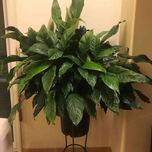 水曜日に先に投稿した鉢と一緒にお部屋に取り込んだスパティフィラム🌿 こちらも大株😅 最初は、他のものと合わせてギャザリングに使ってたものを室内に取り込むために一つにまとめたもの 年数経つうちに大株になり、今では他の植物とのバランスが悪いから寄せ植えも出来ない😅 盆栽みたいに鉢を小さくしたらボリューム減っていくかな⁉️ 最近はお花も立派なのがよく咲くようになってくれたから、これはこれでいいか…とも思うのだけど、重くなってる😅💦 花台はフェレットちゃんが来た時に土を掘っちゃうから、ニューアイテムです😊