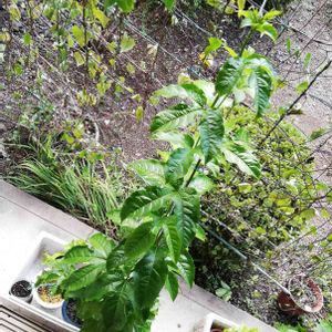 育苗中!! 朝晩本当に寒くて!今日は特に風が冷たかったので、軒下に移動させました 大きいので180cmくらい? 順調に育ってくれてますが、このまま来シーズンまで頑張ってくれるよう防寒の手伝いしなきゃです