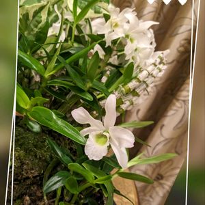 こんばんは~ 12月に蕾をつけてからずうっと咲いてくれて4ヶ月 長〜い花期 まだまだ元気 デンドロビウム 横にこんなに小さな可愛い子供が誕生していたのでpicしました😊