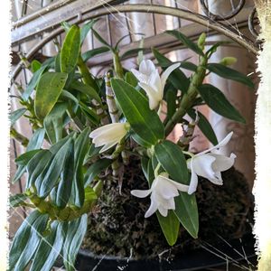 おはようございます😊 苔玉仕上げのデンドロビウム 三年前の誕生日に娘からのプレゼントだったものです やっぱり枯らしたくので水切れにはすご〜く気を付けていました で…、咲きました\(^o^)/ 苔玉も生きているし まだまだ隠れている小さな蕾も沢山 水切れだけを気にしてただけだけど栄養も与えなければだめだろうなぁ?どうしたらいいんだろう😆