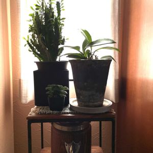 ①うちのオオモノ彩雲閣 うちに来て7年くらい?かな。 めっちゃ放置。 放置放題。 水を月イチあげないこともある。 なのに、 なのに、 めちゃくちゃ強健なヤツ✨😆 ②地上130cm近く。 この薄緑んとこ 今年伸びた分。 夏になると葉っぱが出てくる。 今年 少し遅いかな。 よく季節をわかってるんだよなー。 ③剪定した子ポキした子の寄せ植え鉢のサイウンカクもだいぶ伸びた。 ④赤くなる子。なんてーんだっけ? 赤くならないけど伸びた。 ⑤オマケ ポイゾニーの影。 かわいすぎ💖(⸝⸝◜𖥦◝⸝⸝)💕💭