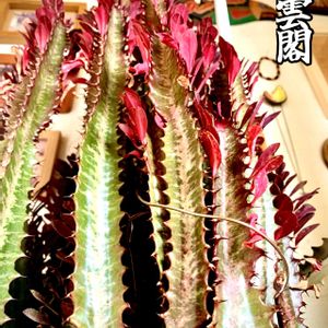 ユーフォルビア彩雲閣🌵 ①おチビも🤏成長してます。 ②③陽が当たって綺麗です☀️ ④彩雲閣、ハイビスカス、ブーゲンビリア、ドラセナ・コンシンネ、銀龍の背比べ🤭