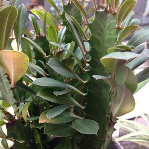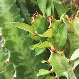 金鯱と一緒に連れ帰ってきたユーフォルビア✨ 何という名前か調べたら『彩雲閣(サイウンカク)』というらしいです👀 切ると白い液体が出て、触ると皮膚炎になるとか…😱 そういえばポインセチアも同じだ~と思ったら同じ“トウダイグサ属”なもよう😨💦