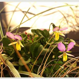 お店であまり見かけない ルルの日向ぼっこ 他の見元ビオラと比べると、野草のような細い姿です 素朴で日向が似合って?かわいいです