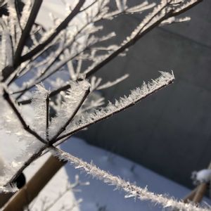 今朝の庭の木 外に出た瞬間 >ぉお?これは寒いなぁぁ。 と感じたので 深夜の気温を調べたところ マイナス15度ほどの世界だったそう ふと顔を上げると 玄関アプローチの木の 枝の先の先まで 見事に凍っていて トテモ素敵な芸術が 出来上がっていました 雪の降らないところに住んでいる 大切な人に見せてあげたいですね