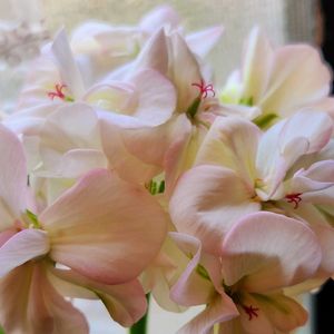 お家の中ではゼラニウム満開です。外は❄雪…… たまに雪が消えて、寒い朝には、霜柱⛄❄ 春よ来い(笑)🌿💓…💮🪻🌱