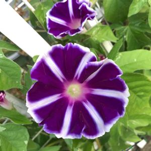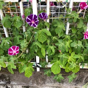 柵に這わせた方も、綺麗に咲きました。 ピンクだけだと思ってたら、紫もありました。 やはり朝顔いいですね🙂✨