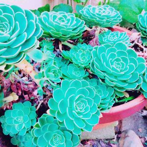 エケベリア💙 行きつけの花屋さんにて 手の平くらいある 大きなエケベリアさんが¥198で売られてました〜💕😆 何て種類だろ?🤔 教えて頂きました〜🎵😆 七福神さんでした💞