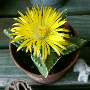 ワニのお口のような多肉さんからお花がパッカーン😁💓 今年、初めて咲いてくれましたฅ(^ω^ฅ) 💕 追記 お名前教えていただきました。 ありがとうございます。