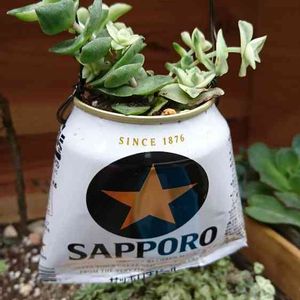 今 一番好きな寄せ植えかも💓♥️❤️ 右は多肉deRingさんでリメ缶購入 理想の垂れ具合になった⤴️ 左は作りたて ホヤホヤ🍀 置き型を急きょ吊し型に変更したから蓋が開き過ぎてる😅