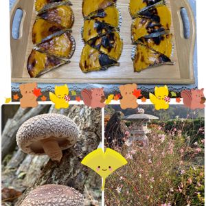 🍠スイートポテト🍠 おはようございます😊 安納芋のスイートポテト焼けましたよ🎶 お茶しましょうか🍵🫖☕️ お待ちしていま〜す😋 今朝見に行ったら椎茸10個位出てました😋わくわく❣️ 寒くなったけど、まだガウラ(白蝶草)が咲いています🦋🦋🦋🦋🦋
