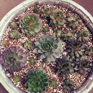 センペルビウム6種寄せ🌱 中央…ライラックタイム 中央上から時計回りに アグロウ、マリアラーチ、タルク ラドム、リンボー