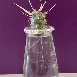 不手際で落っことして、頭と胴体がバラバラになったテフロカクタスの頭を水耕したら根がチョッピリ出てきましたぁー😃
