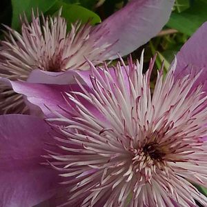 クレマチス、ジョセフィーヌ 咲きました。💮💮💮 第1回の花友フェスタで購入したクレマチスです。 去年は小さくて栄養不足でしたが、今年は蕾の時から大きく、たくさん咲います。 おまんじゅうのような真ん中が徐々に開いてきました。