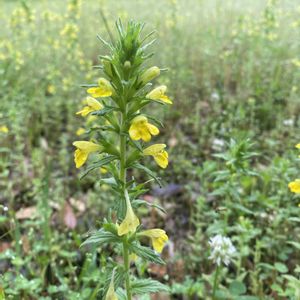 西洋引蓬(セイヨウヒキヨモギ) ゴマノハグサ科 花期 5~6月 分布 ヨーロッパ原産で日本では関東以西 1973年に千葉県で初めて見つかりイネ科やマメ科の植物の根に半寄生し、関東地方以西に分布を広げているそうです。
