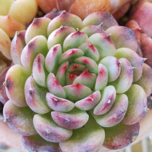 「マルセル」 Marcel ベンケイソウ科 エケベリア属 いつの間にか 貝がら虫🐛にやられちゃってました。 見えないけど ベビーちゃんがいてます。✌️