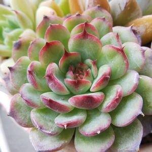 最近美しくなっております😆✴️ 夏ごろまだ緑の時にお迎えした パクさん苗のマルセルさん❤️ 外葉がコゲてますが 紅葉も綺麗になって中心がかわいくなってきた🎵 先日、多肉整理の時にひっくり返してしまったんだけど かなり立派に根が張ってて プレステラの威力にスゲーって感動しました❗