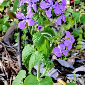 ゴウダソウ (合田草) ムラサキハナナ(ショカツサイ)に 極似の この植物・・・ 合田草 です。同じアブラナ科ですが、ゴウダソウ属になります。基本 越年草(一年草)です。 二年草であり、宿根草でも あります 🙄 だから、花は「十字花」・・・😊 葉っぱ🌿の形が 異なり、卵形 つまりハート形をしているのです。葉には 荒い鋸歯があって、株の下部の葉には 長い 柄がありますが、上部の 葉には 柄が ありません。この葉は 茎を抱かないのです。茎を抱くムラサキハナナとの 大きな違いです。 花後の果実は 薄っぺらな小判形をしていて、中の種子が 透けて見える程です (5枚目) 名前の由来は、フランス🇫🇷から 最初にタネを持ち込んだ 教授の 名前を 取っています。 別名:ルナリア (属名) ギンカソウ«銀貨草»(種子のかたち から)
