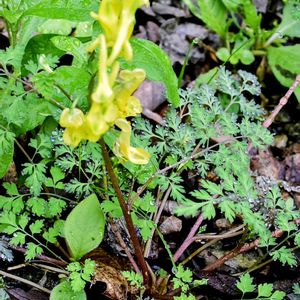 フウロケマン (風露華鬘) 昨年まで この⬆花を「ミヤマキケマン」として 載せてましたが、生息地の違いなど 諸々の理由で『フウロケマン』と 改めてさせて頂きます 🙇♂️ (変種・・変種・・と 何かと 難しいのよね~ 💦) さて・・・この⬆手の花は、どのようにして 受粉するのか? 答え・・になるか?どうか?・・・その方法が 次のように 書いてありました ポリネーター(送粉者)の 昆虫が 花の正面に 止まり、"距に頭を突っ込んで" 吸蜜します。その時、昆虫の体重で 外側下の花弁と 内側の花弁が その付け根の部分を支点にして 下がります。そうなることで 花弁の上部が開き、雄蕊と雌蕊が出てきて 昆虫の身体に触れ、授受粉が 行われる・・・ らしいので、同じことを 私がやってみました・・・🫤 上手く いきませんでした・・・🤣 私は ポリネーターには なれませんね・・・😧 🤣🤣