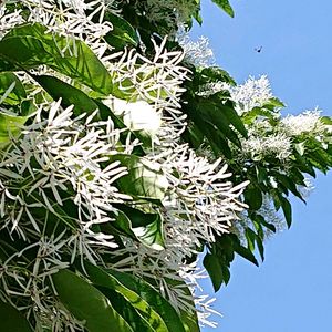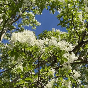 青空に映える、ナンジャモンジャ🍀 毎年楽しみにしている、ヒトツバタゴの花✨🤍💚 眩しいくらいに輝いていますね😊 3枚目はお向かいさんのヒトツバタゴ。 とても綺麗だったのに、数年前に家主さんが変わり、途中でブッツリ切られてしまいガッカリ🥲 でも、今年また咲き始めましたよ。 植物の生命力は、凄いですね✨🍀🤍💚💕 1️⃣2️⃣2025/4/24 3️⃣2025/4/25 撮影🍀
