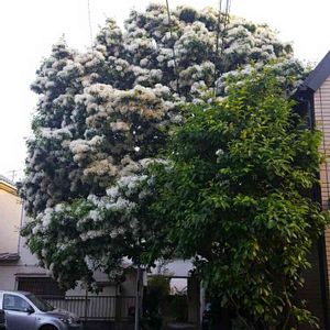 高い木です。雪をかぶったような白い花を咲かせていました。
